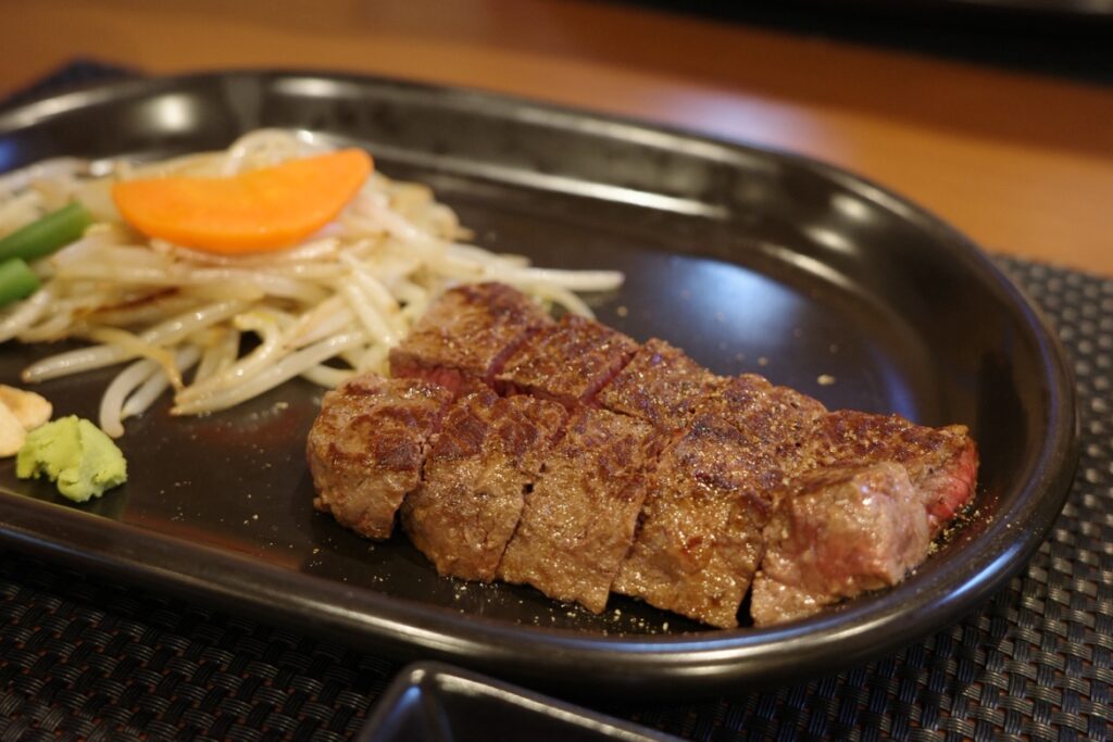 せんだステーキ120g、上品な油で焼き加減も完璧、ソースとの相性も抜群でした!